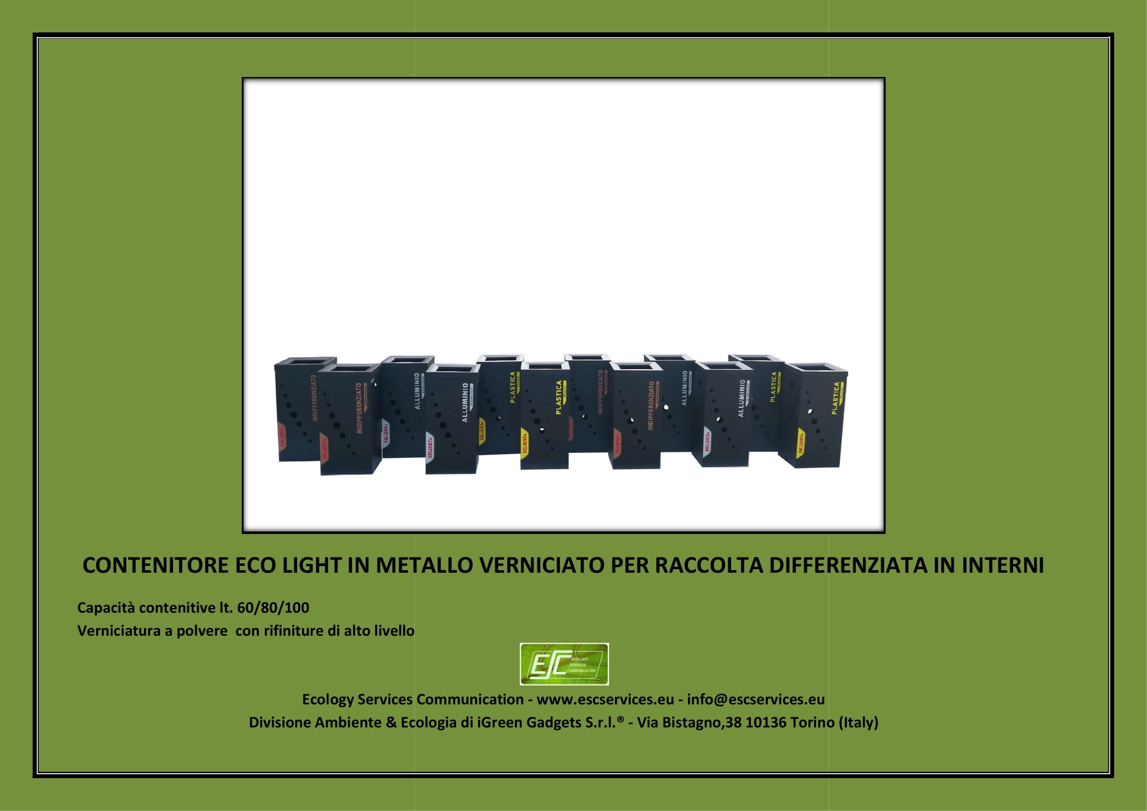 The Eco Light containers made of painted metal, are high quality products particularly suitable for internal use in structures such as corporate headquarters, offices, schools, universities, hospitals, medical and dental offices, scientific laboratories and clinical analysis etc. ….