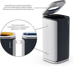 The capacity of the KOBRA WASTEE bins is 60 litres, the bags to be inserted inside for the different types of collections are 100% recyclable and have dimensions of cm. 34 x 34.5 x H.70.5.