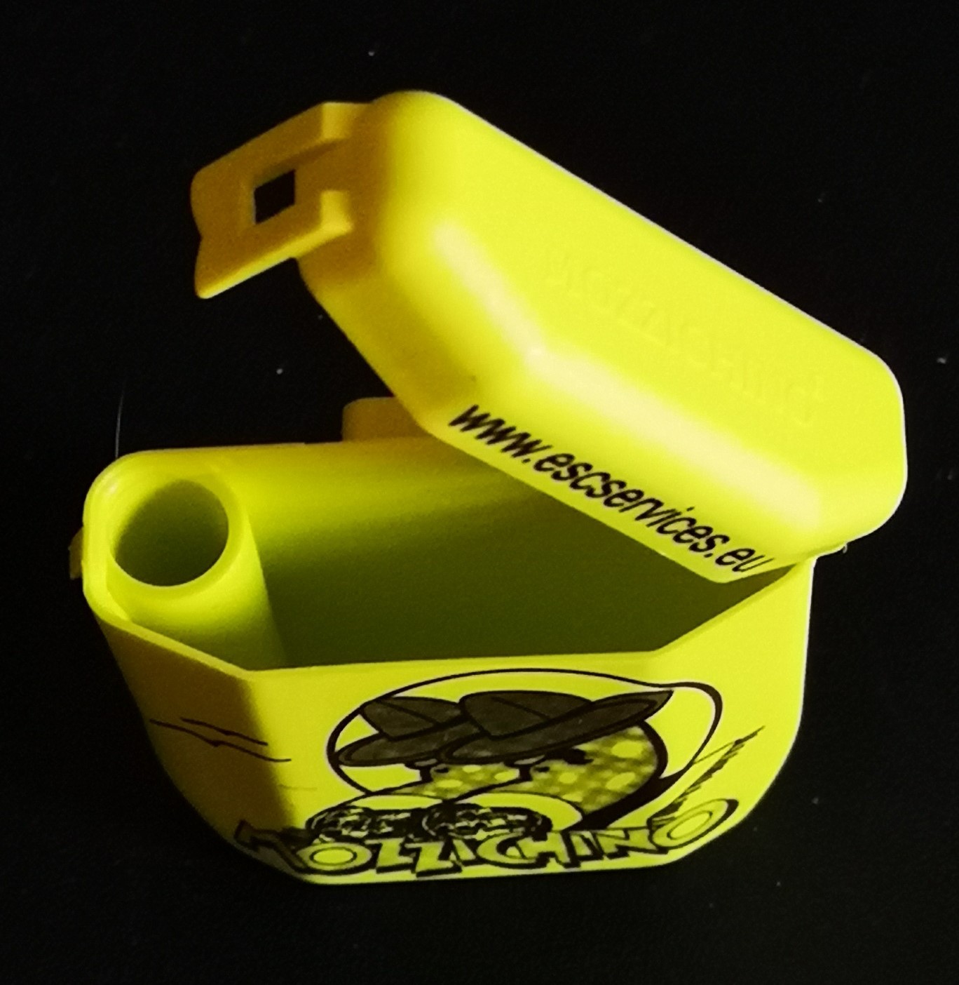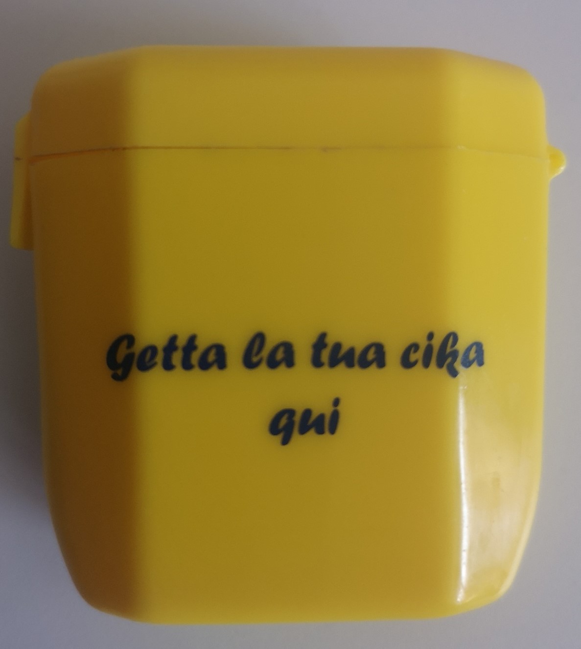 Mozzichino can also be used as a chewinggum container, thus avoiding the abandonment in the environment of millions of pieces of this unpleasant type of waste.