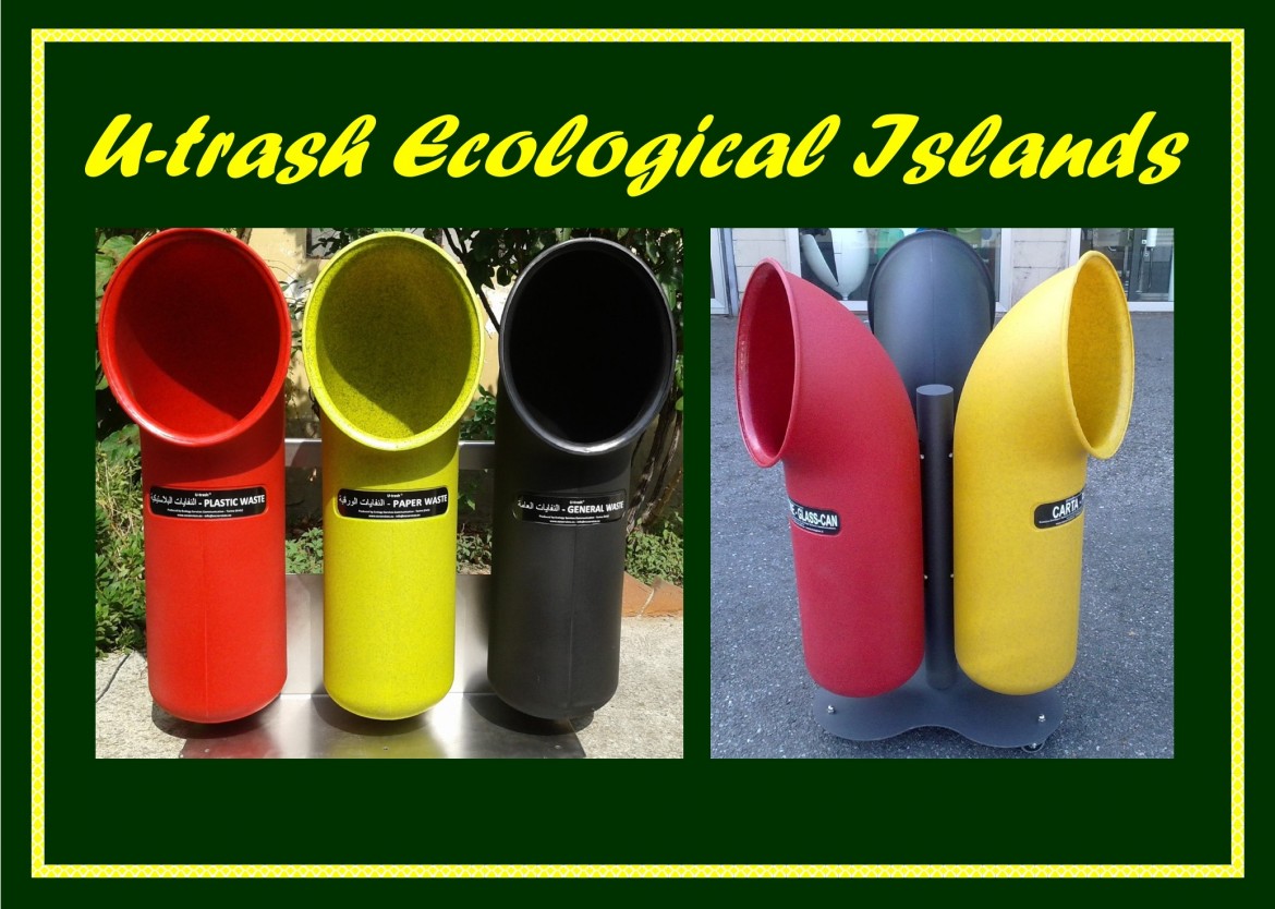 U-trash Ecological Islands to perform the differentiated collection, are realized by combining three or more U-trash multipurpose containers on structures made in galvanized metal resistant to sea salt be fixed to the ground, or equipped with rotating wheels to allow the rapid shift if required by the usability of the Collector.